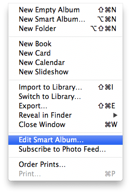 وجدت في قائمة البرنامج خيار يدعى Smart Album من البار العلوي للبرنامج بجانب شعار التفاحة تحت قائمة File كما في الصورة التالية :