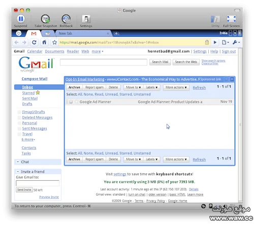 اول ما اشتغل النظام ذهب بي مباشرة الى بريد قوقل وكان ترتيب المتصفح ممتاز فعلا  ، والتقسيم كان يظهر لي على الجهة اليسار في الأعلى من المتصفح ما يسمى بالبرامج او كما في الويندوز قائمة ابدأ ، وعلى الجهة اليمين يكون التاب الخاص بالصفحات التي اتصفحها