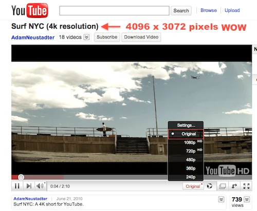 عند اختيار عرض المقطع Original فأنت ستقوم بعرض المقطع الذي تم تصويره ورفعه من قبل صاحب المقطع ولغاية دقة 4096 أي على حسب الكامرة الملتقط بهذا هذا المقطع ، واعتقد انها خطوة جدا ممتازة من يوتيوب لدعم هذي الدقة في النقاوة لأنها ستجعل متابعة المقاطع افضل وأفضل ، طبعا سينعكس هذا على سوق الكامرات وبرامج المونتاج في السوق حاليا لكي تقوم هي الأخرى بدعم هذي النقاوة بدون شك ،، وكالعادة نحن المستخدمون سنستفيد دائما